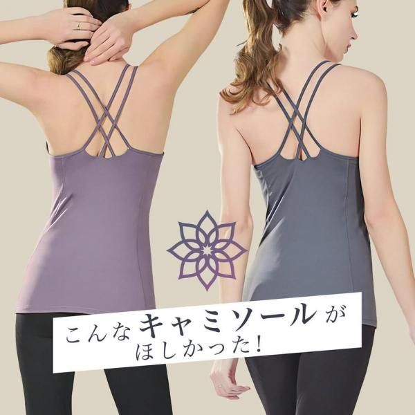 ヨガウェア おしゃれ ヨガ トップス カップ付 ロング丈 レディース 美シルエット 背中見せ かわいい ヨガウェア カップ付き 可愛い ホットヨガ ピラティス HurrySlowly ハリスロ